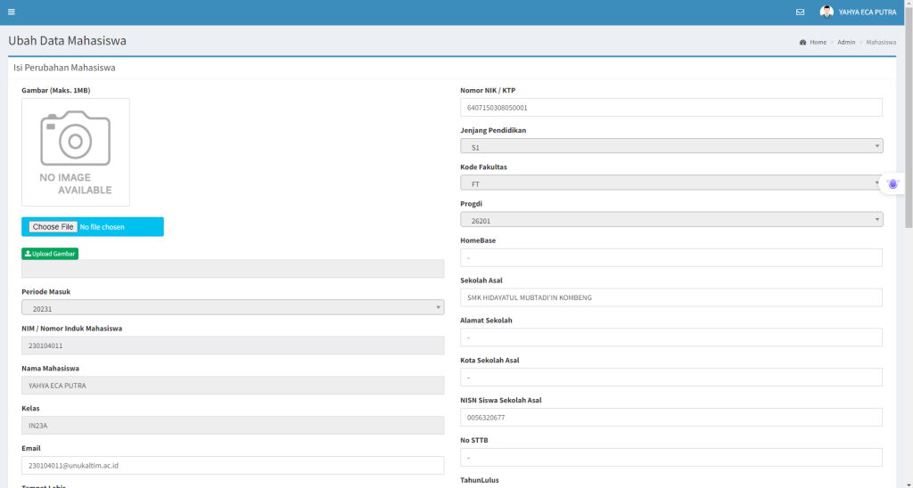 Data mahasiswa harus lengkap agar fitur akademik seperti pengisian KRS dapat digunakan.